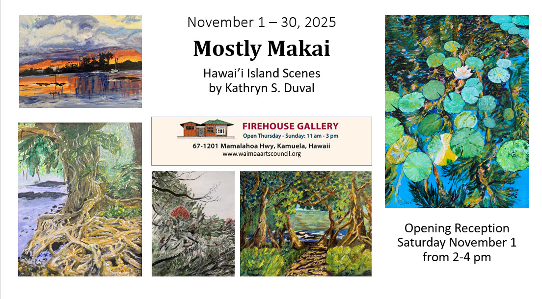 Hawaii Island artists are invited to enter the 41st Annual Founders Juried Art Show, which will be held at Kamuela’s Firehouse Gallery in October and sponsored by the Waimea Arts Council. Exhibition: October 4 - 26, 2025 Reception: October 4, 3 - 5 pm