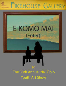 The Waimea Arts Council announces a call for young artists in North Hawai`i for its 38th Annual Nā `Ōpio Youth Art Show. This show coincides with National Youth Art Month which falls in March. Young artists in grades 6 through 12 from schools and homeschooled students in the North and South and Hāmākua districts are invited to submit their original works of art for this year’s show.