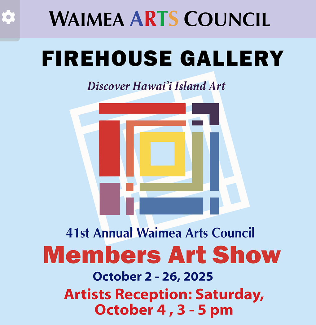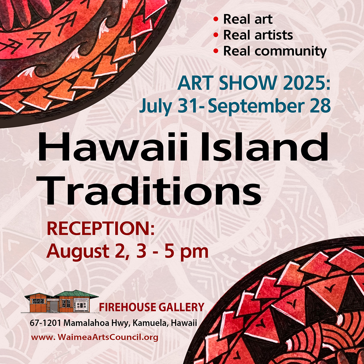 The Waimea Arts Council presents an exciting new art show at the historic Firehouse Gallery. Hawaii Island Traditions displays vibrant original art from talented Big Island artists interpreting our communities’ customs and festivals. In addition you will find quality prints, unique … [Read more...] about Hawaii Island Traditions Art Show – July 31 to September 28, 2025