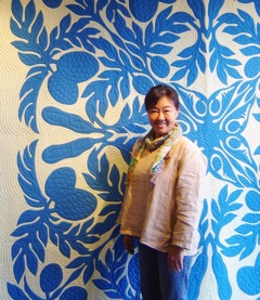 Shigemi teaches quilting in Hayama, Japan, which she learned from Doris Iwalani Feary Nosaka of Hilo.Doris introduced Shigemi to the Waimea Quilt Club almost 25 years ago. The Quilt Lei Hayama, a club in Japan, was founded by Obata and presently has between 15 and 20 students as on-going members. Ms.Obata’s classroom features many Hawaiian fabrics and books.