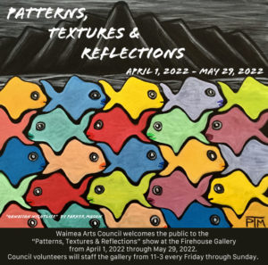 Firehouse Gallery is open Friday, Saturday, and Sunday from 11-3 and whenever the flags out front are flying. It is located at 67-1201 Mamalahoa Hwy., Kamuela, Hawaii. For questions, email: waimeaartscouncil@gmail.com or visit www.WaimeaArtsCouncil.org.