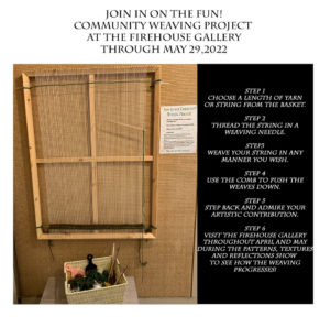 During the show, the public is invited to participate in the community weaving project. Gallery guests will pick yarns or threads and hand weave on the wall mounted loom. We encourage the community to stop by during the months of April and May to see how the weaving progresses.