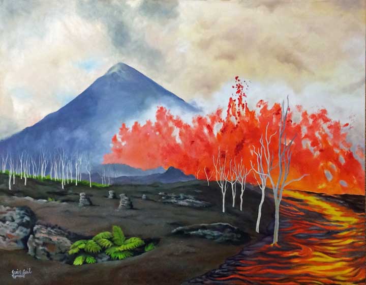 During the month of April, the Firehouse Gallery in Waimea will exhibit a colorful artistic showcase inspired by the Legends of Madame Pele-Earth, Wind & Fire.